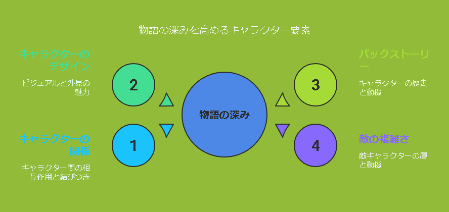 - キャラクター相関図が作品全体の魅力を引き立てる重要な要素であることを解説。